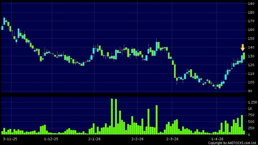 FORTIOR(01304.HK) shows a trend reversal. Last printed at 125.600; fell 3.976%; on volume of 154.68K shares and turnover of $19.77MRecent PerformanceIn 3 days: +0.722%In 5 days: +3...