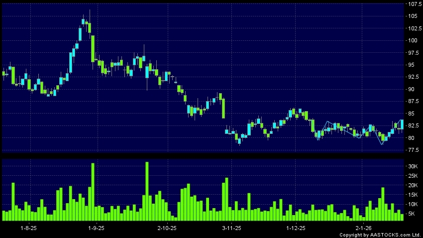 Disclaimer:The information, financial market data, quotes, charts, statistics and / or various technical analysis indicators are automatically generated based on the analyses and interpretations of publicly available information and should be used as references only at your own discretion. Such automatically generated content does not reflect the views or opinions of AASTOCKS.com Limited nor does AASTOCKS.com Limited make any guarantees to their accuracy, completeness, timeliness or correctness. You are advised to consult independent professional advice to verify pricing information or to obtain more detailed market information. Any uses of information or trades executed following the said automatically generated content are taken at your own risk for your own account.