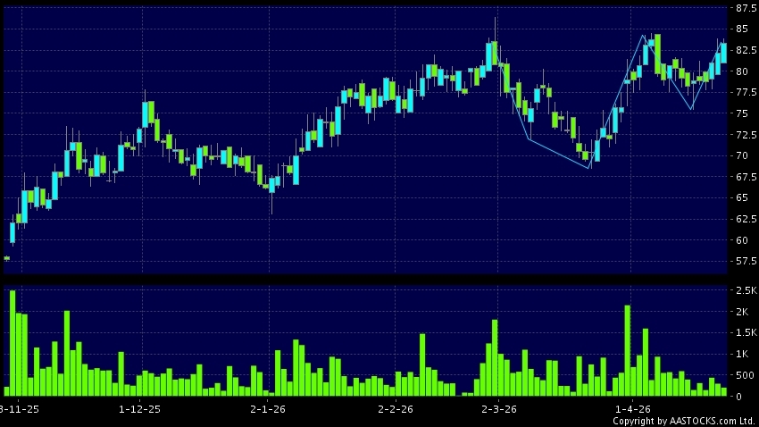 Disclaimer:The information, financial market data, quotes, charts, statistics and / or various technical analysis indicators are automatically generated based on the analyses and interpretations of publicly available information and should be used as references only at your own discretion. Such automatically generated content does not reflect the views or opinions of AASTOCKS.com Limited nor does AASTOCKS.com Limited make any guarantees to their accuracy, completeness, timeliness or correctness. You are advised to consult independent professional advice to verify pricing information or to obtain more detailed market information. Any uses of information or trades executed following the said automatically generated content are taken at your own risk for your own account.