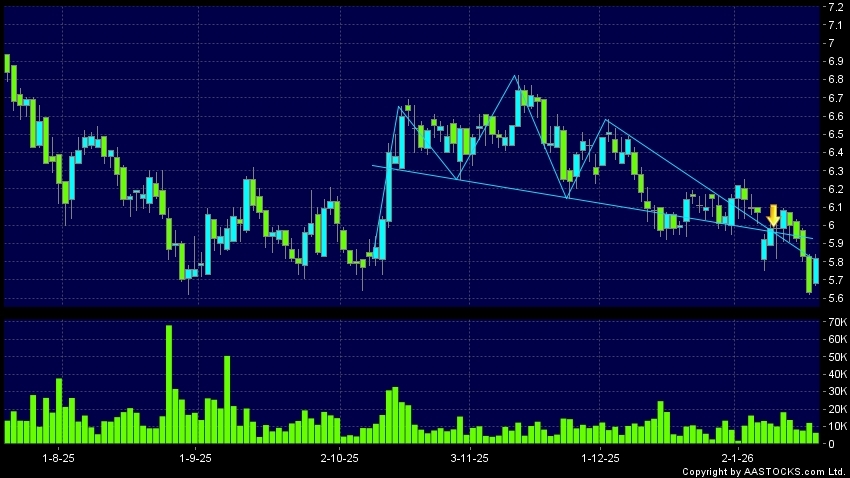 CQRC BANK(03618.HK) appears a downside breakout, dropped below the neckline. Last printed at 5.820; rose 3.375%; on volume of 6.35M shares and turnover of $36.62MRecent Performance...
