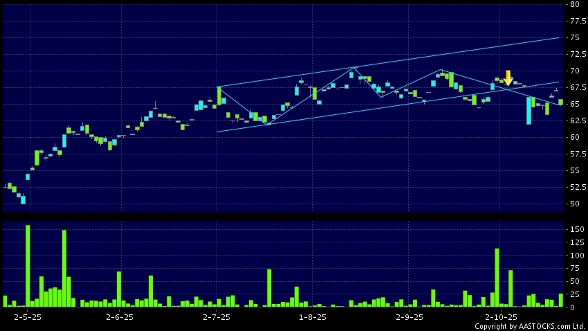 区域突破指股价在过去的一段时间只在一个范围在内活动,然後股价下跌作出突破,跌穿区域的底部,技术走势偏软。(港股报价延迟最少十五分钟。沽空资料截至 2025-10-22 16:25。)