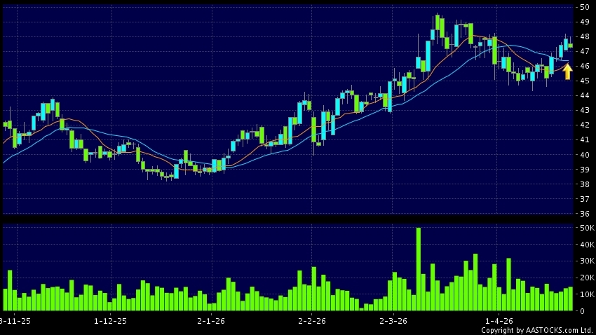 黃金交叉是一個利好訊號,指股價的短期移動平均線升穿長期移動平均線,例如50天線升穿250天線,在圖表上構成交叉的形狀。股價通常會上升形成一個上升趨勢,技術走勢向好。(港股報價延遲最少十五分鐘。沽空資料截至 2026-04-27 16:25。)
