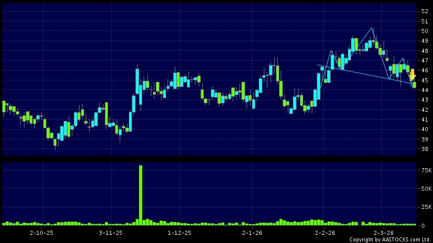 免責聲明:以上金融市場數據、報價、圖表 及/或各種技術分析指標乃根據公開資料分析和演釋自動生成的,僅作參考使用。此類自動生成的內容並不代表AASTOCKS.com Limited的立場。AASTOCKS.com Limited並不保證其準確性、完整性、實時性或者正確性。閣下應諮詢獨立專業意見,以核實定價資料或獲取更詳細的市場信息及須為所有跟隨此類自動生成的內容執行的交易或使用該內容負責。