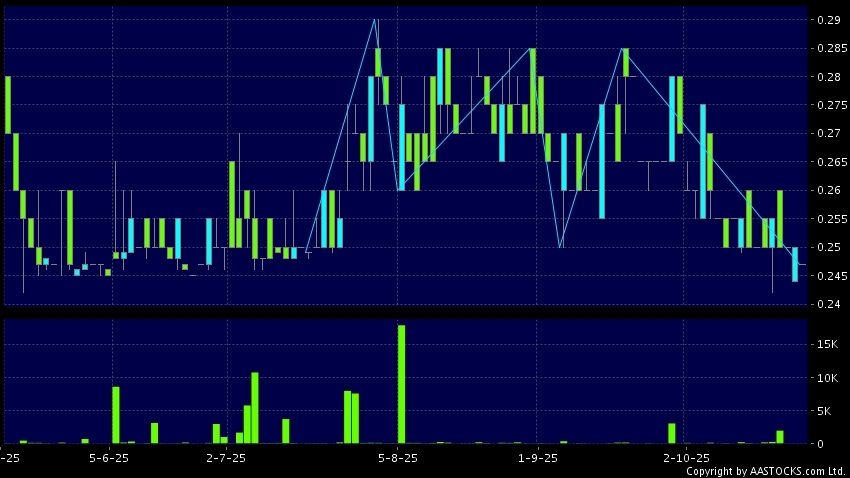 立德教育(01449.HK) +0.005 (+1.961%) 呈現三重頂突破向下。現價報0.247,下跌1.200%,成交量2.00千股,成交額494.00。