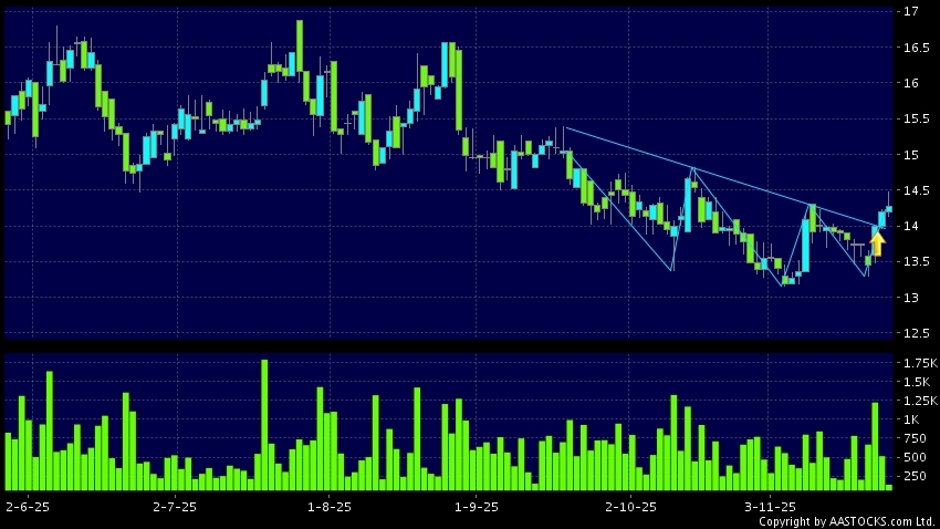 免責聲明:以上金融市場數據、報價、圖表 及/或各種技術分析指標乃根據公開資料分析和演釋自動生成的,僅作參考使用。此類自動生成的內容並不代表AASTOCKS.com Limited的立場。AASTOCKS.com Limited並不保證其準確性、完整性、實時性或者正確性。閣下應諮詢獨立專業意見,以核實定價資料或獲取更詳細的市場信息及須為所有跟隨此類自動生成的內容執行的交易或使用該內容負責。